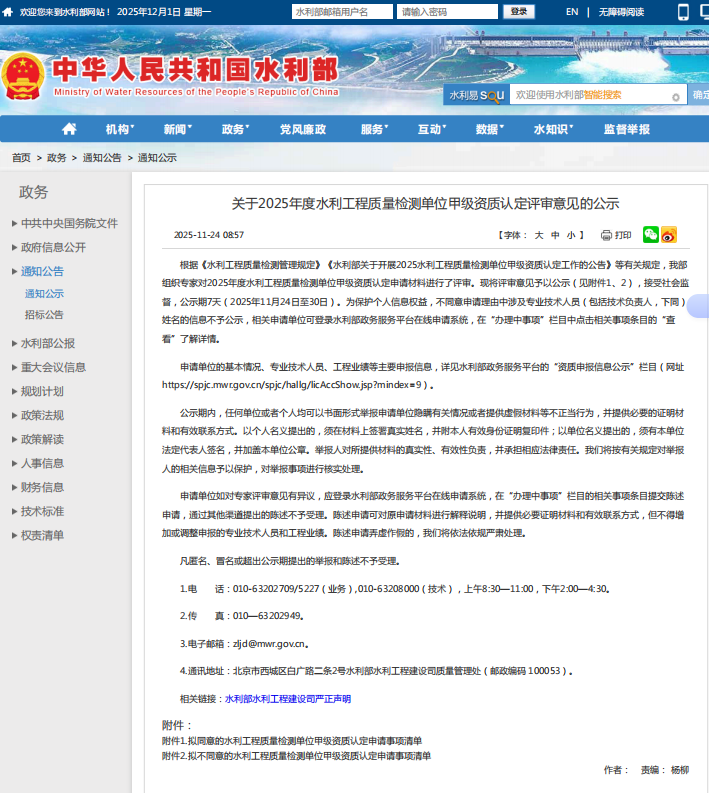 喜報(bào)|湖北華旭檢測(cè)有限公司順利通過水利部?jī)身?xiàng)甲級(jí)檢測(cè)資質(zhì)公示